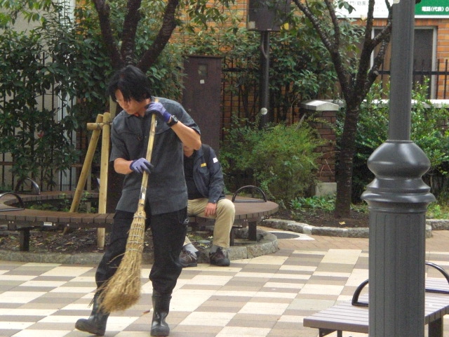 若い男性職員が、トイレ掃除から、公園の掃き掃除まで、一生懸命、働いている姿を見て、感心しました。