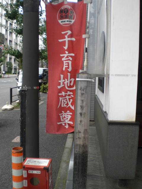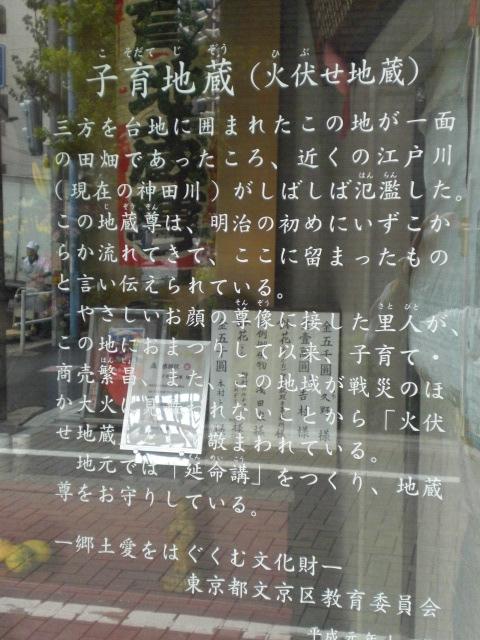 江戸川橋通りにある子育地蔵尊は、母親の健やかな生育への願いに、加えて、火災の無いことへの願いも併せています。
