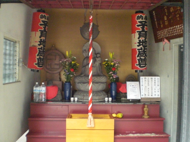 江戸川橋通りにある子育地蔵尊は、母親の子育てに関する願いと火災の無いことへの感謝の表れです。