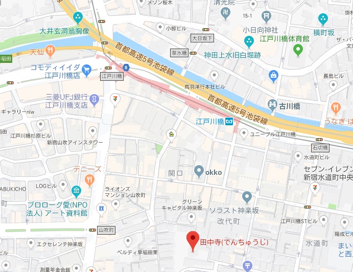 田中寺は、江戸川橋通りから、入ったところにあり、道が入くんでいますので、注意が必要です。