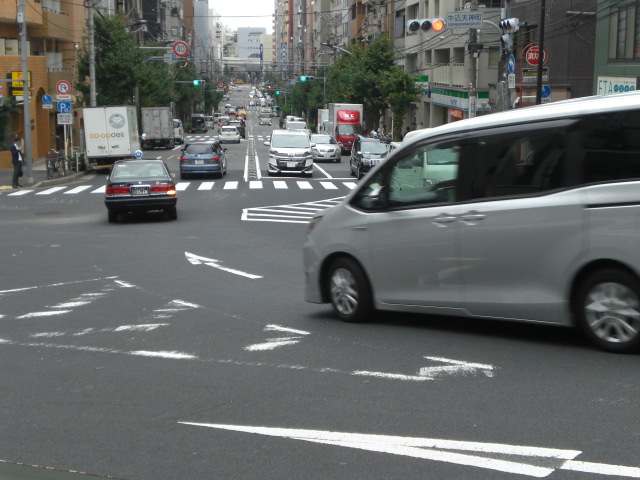 牛込天神交差点は、広い交差点ですので、坂としての勾配は、あまり気になりません。