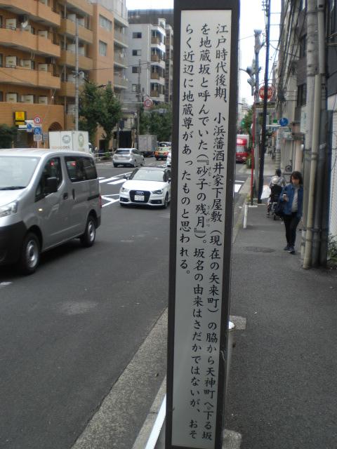 江戸川橋通りの先、矢来町の手前の坂を、地蔵坂と言います。標識が立てられています。