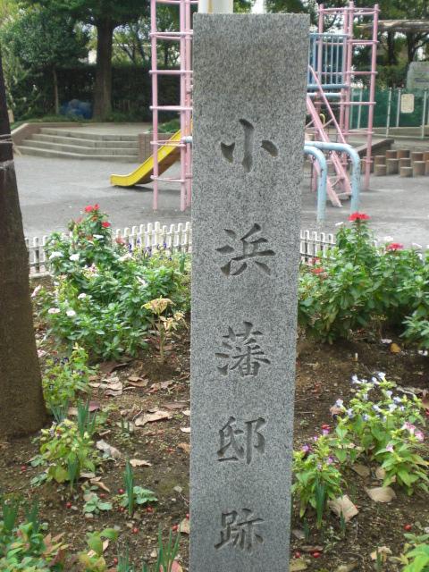 矢来公園自体は、あまり広くなく、公園の中央に遊具が置かれていて、南側に、小浜藩藩邸跡の石碑と、杉田玄白生誕の地の石柱が置かれています。