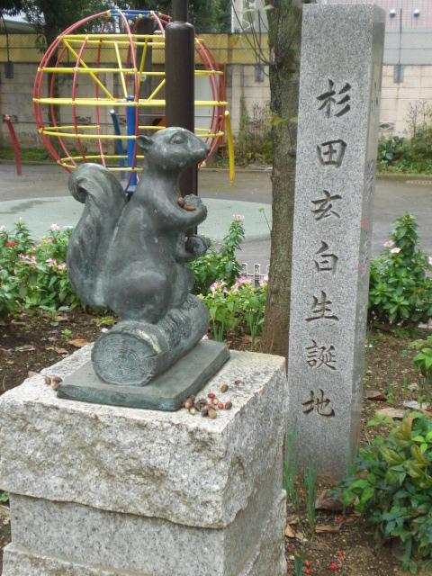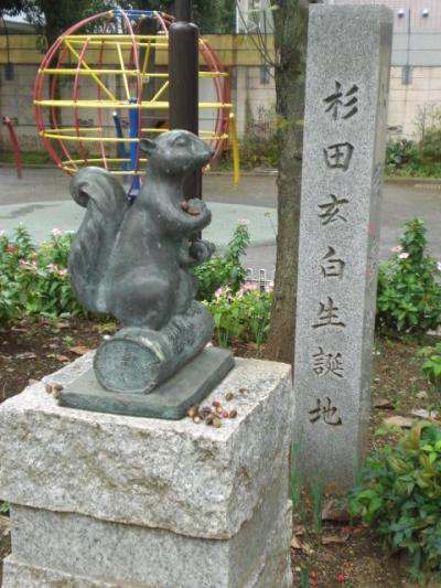 矢来公園には、小浜藩邸跡の碑や杉田玄白の生誕の地の碑が置かれています。