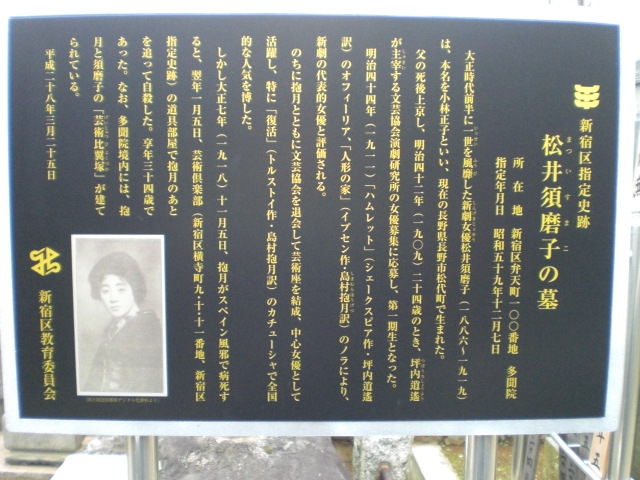 松井須磨子の墓が、新宿弁天町の多聞院の墓地に、建てられています。