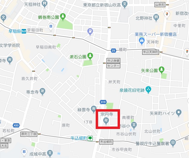 浄土宗の宗円寺は、外苑東通りから少し入っていますので、判りづらいかも知りません。