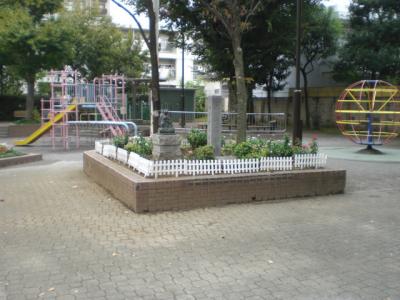 公園敷地内には、漱石終焉の地とされる猫の塔が立てられています。