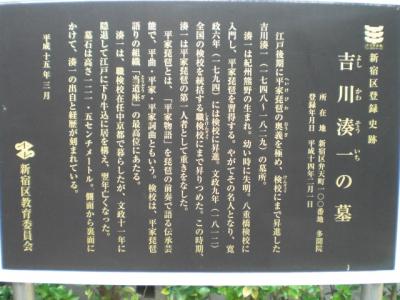 多聞院の敷地に入り、最初の墓の位置にあるのが、吉川湊一の墓です。