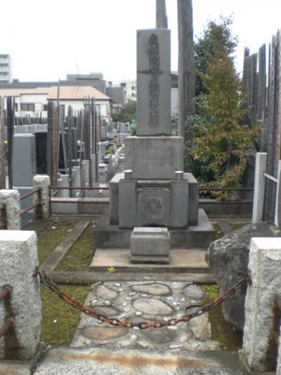 関孝和の墓は、広い墓地区画の中に、三つ墓石から成リ、立派な墓です。