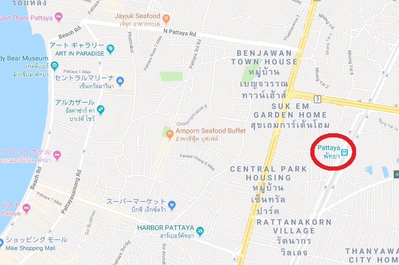 パタヤ駅は、タイ国鉄の東線の支線であるサッタヒープに延びる路線の途中駅となっています。