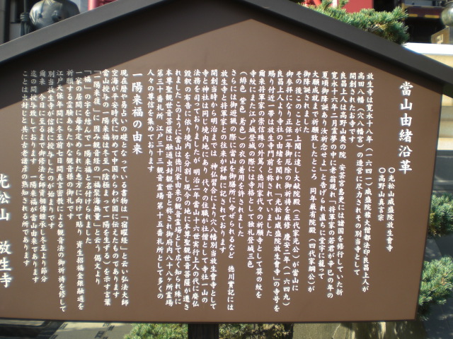 放生寺は、山号を光松山と称し、高野山真言宗の寺院です。穴八幡宮の別当寺で、敷地が隣接しています。