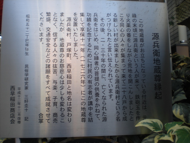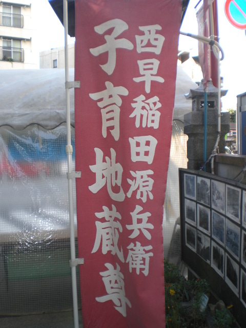 子育て地蔵(源兵衛地蔵)は、高田馬場駅から東に進み、明治通りを過ぎた所にあります。