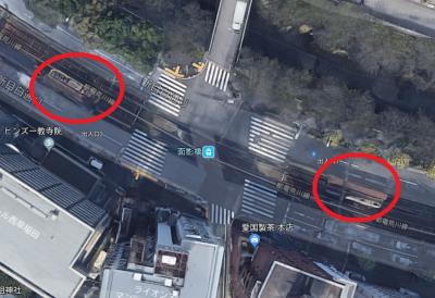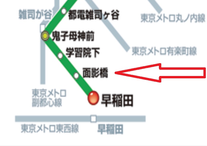 即ち、西行電車は面影橋の西側、東行電車は面影橋の東側にあります。