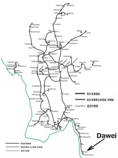 ミャンマー国鉄の路線図を見ますと、ダーウェーの南側は、建設中の路線(点線)か
