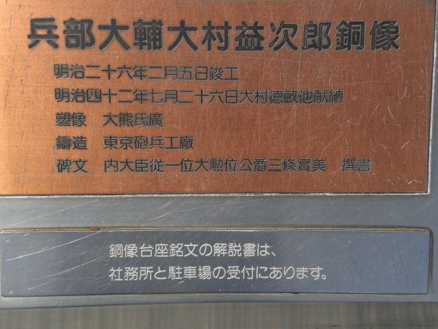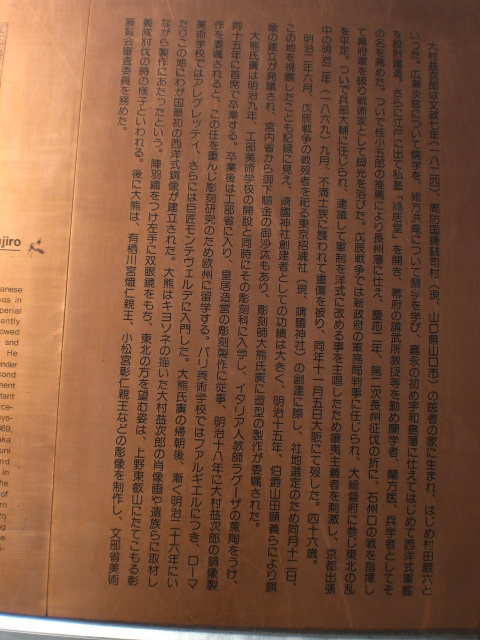 今回の大村益次郎の銅像見学は、その意味からとてもためになり、有意義なものでした。- 旅行時期