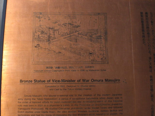 靖国神社の創設に尽力した大村益次郎の銅像が、靖国神社の参道に置かれています。