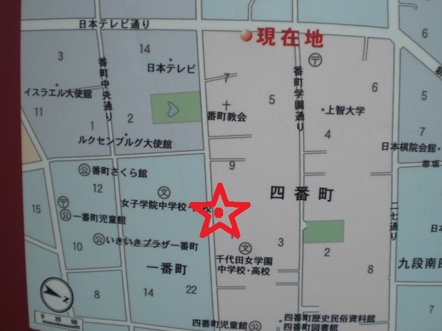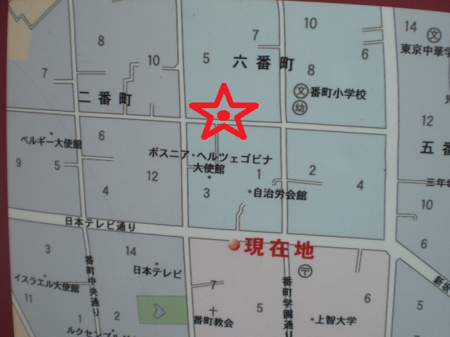 有島武郎・有島生馬・里見とんの一家が住んでいた旧居跡には、日本テレビ通りと番町文人通りの交差点から西側に進むと、マンションの石垣に標識が付けられています。