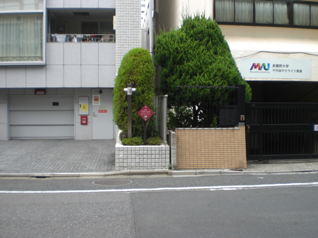 マンションと大学敷地の間の塀の植え込みの中ですので、判らないと思います。