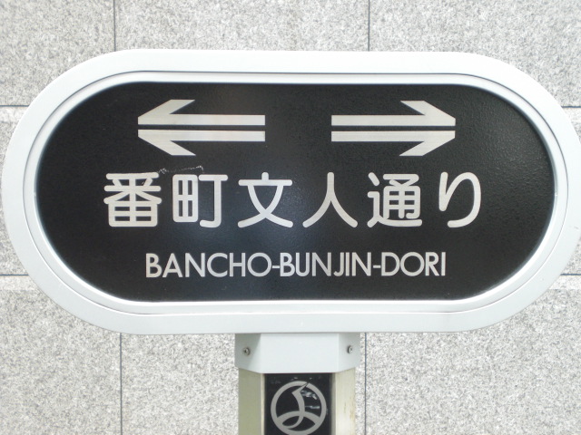 有島武郎・有島生馬・里見とんの旧居跡の標識が、番町6丁目にあります。