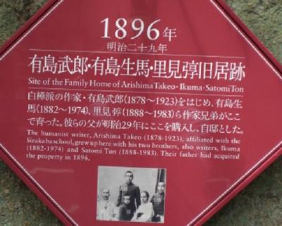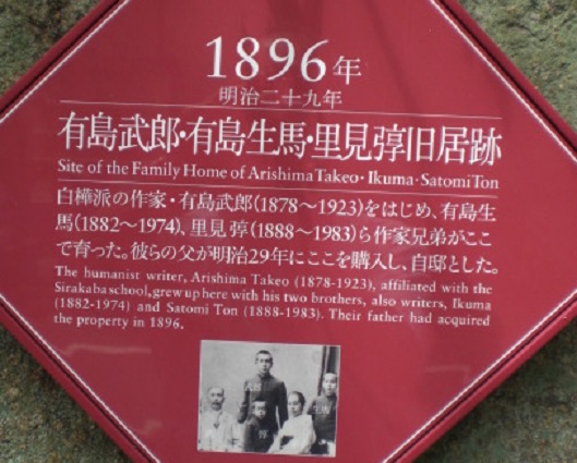 有島武郎・有島生馬・里見とんの父親が、明治29年に、この地を購入し、自邸としたとのことです。