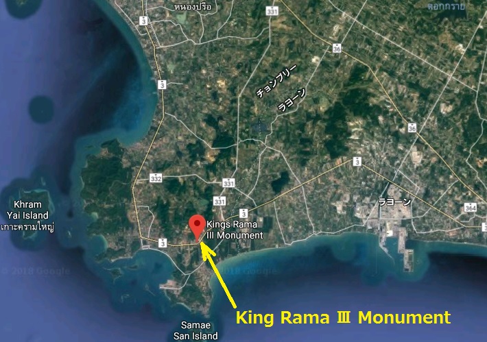 パタヤの南にある海軍の都市サッタヒープからラヨーンに向かう国道3号線沿いに、ラーマ3世の銅像が見られます。
