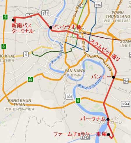 今回、スクウィンヴィット通りからカンチャナブリに行く際、どうしたら南バスターミナルに、渋滞に合わずに、安心して行くことができるか悩みました。