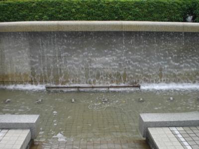 鐘塚公園の一角には、滝のように水が流れ落ちる壁とその水が流れる水流の水路が、心地良いみずみずしさを醸し出してくれます。