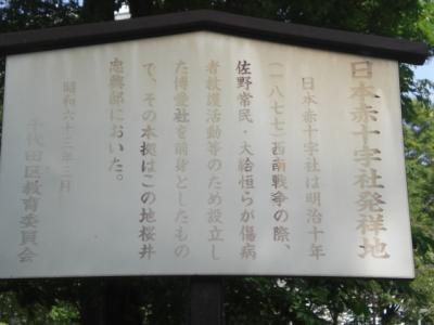 いずれにしましても、日本赤十字社発祥の地の標識は、立て看板1枚のみで、かつ、年月が経たため、文字がかすれて見えづらくなっています。