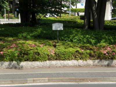 飯田橋駅の南側に逓信病院があり、逓信病院の入口の植え込みの中に、日本赤十字社発祥の地の標識が立てられています。