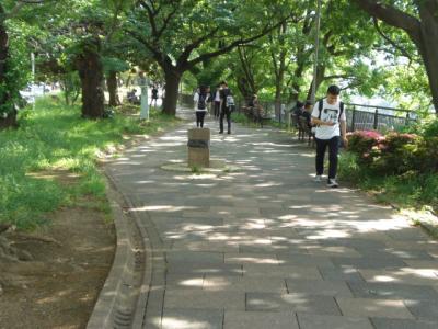 外濠、JR線路と東側に並走する道路に挟まれた細長い公園ですので、公園というよりも、道路もしくは通りとも言うべきかもしれません。