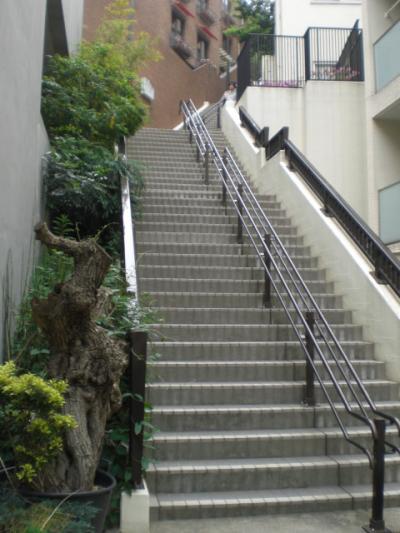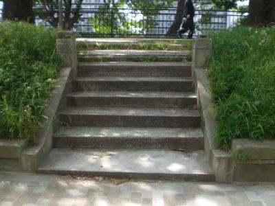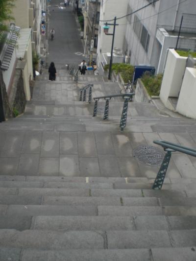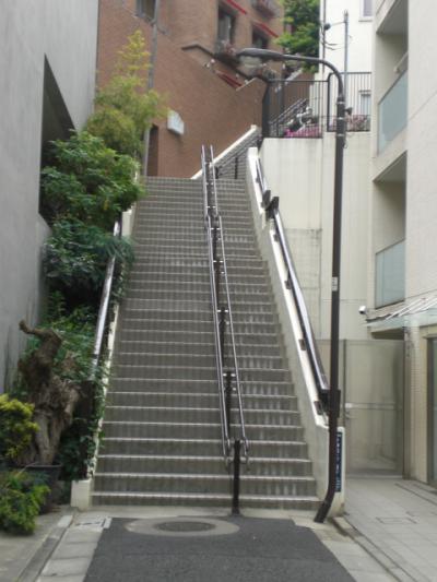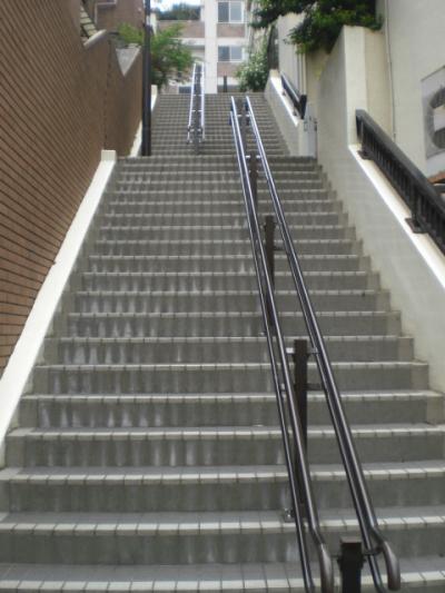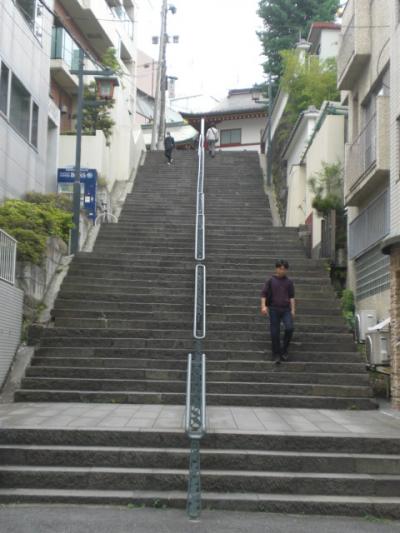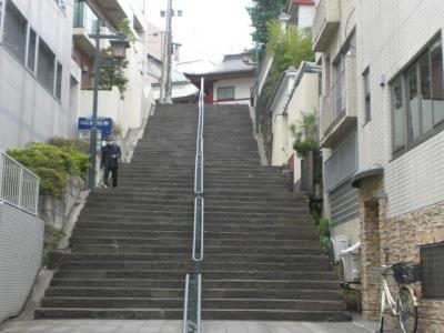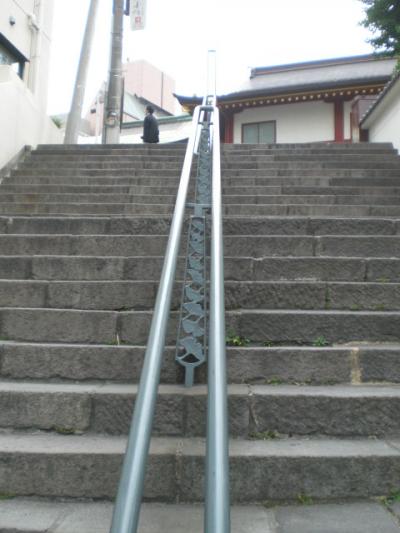 似たような例として、湯島天神の天神男坂がありますが、天神男坂の方には、踊り場が無い分、勾配が急に感じています。