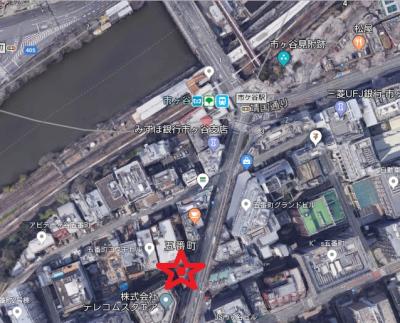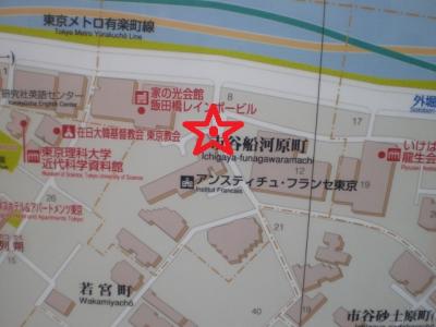 博多満月は、市ヶ谷駅の南側、五番町の坂の中間の東プレビルに入っています。