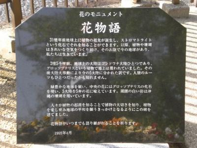 人々が植物の起源を知ることで植物の大切さを知り、植物を愛し育み地球の平和を願うきっかけとなうようにこの碑を建てましたとあります。