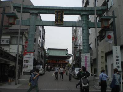 明神女坂を上がると、平坦な道になり、右に曲がると、神田明神が見えてきます。