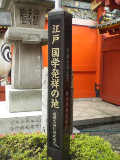 国学発祥の地の石碑が、神田明神の本殿の東側に置かれています。