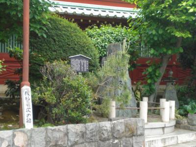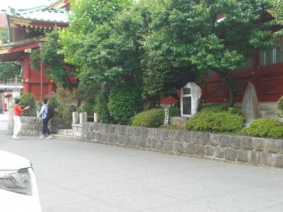 銭形平次の碑が、神田明神の本殿の東側に置かれています。
