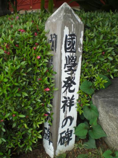 また、国学発祥の地の標識柱が随神門の東側に立てられています。