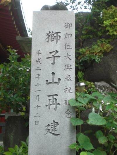 神田明神の東側に、石の山があり、その山に親子の獅子像が置かれ、獅子山と呼ばれています。