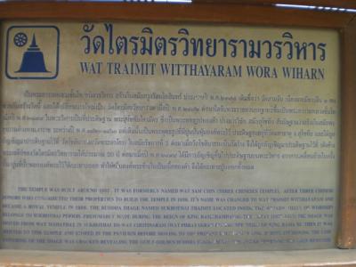 ワットトライミットの黄金製の仏像は、盗難防止のため、漆喰で表面を覆って、中の黄金を隠していましたが、移設のための運搬の際、被覆がはがれ、中が黄金であることが判明したと言われています。