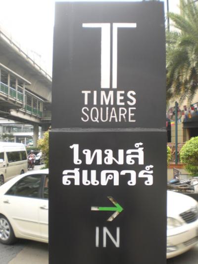 BTSアソーク駅から高架歩道が続いていて、タイムズスクエアビルの3階に連接しています。同じように高架歩道により、ロビンソンデパートとも、繋がっています。