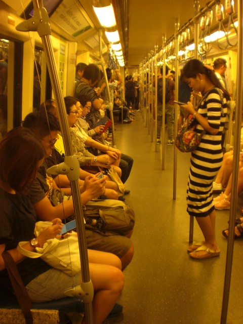 また、地下鉄の車両の中で、立っている人々が、多いのに気が付きました。