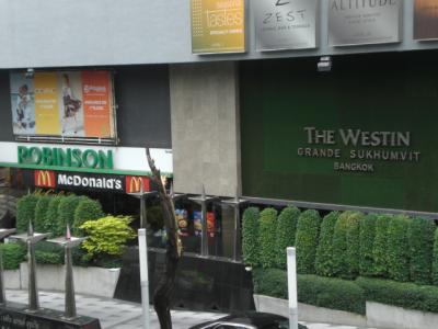 スクウィンヴィット通りに出ると、ターミナル21やロビンソンが、それぞれ右側と左側にあり、とても便利で、かつBTSの駅が目の前です。