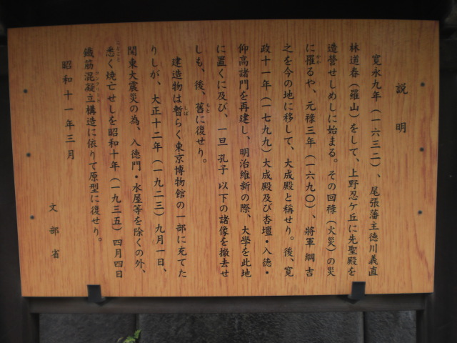 湯島聖堂の敷地の中には、孔子の銅像を置くとともに、仰高門、入徳門そして杏壇門等の施設を配し、それらの核心として孔子廟たる大成殿をして、湯島聖堂の中心としています。