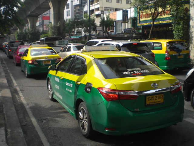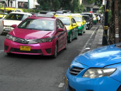 しかしながら、観光客の多いバンコクでは、観光客がタクシーを多用するようで、タクシーも、バンコクの目抜き通りに、集まってきます。