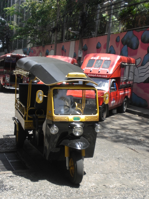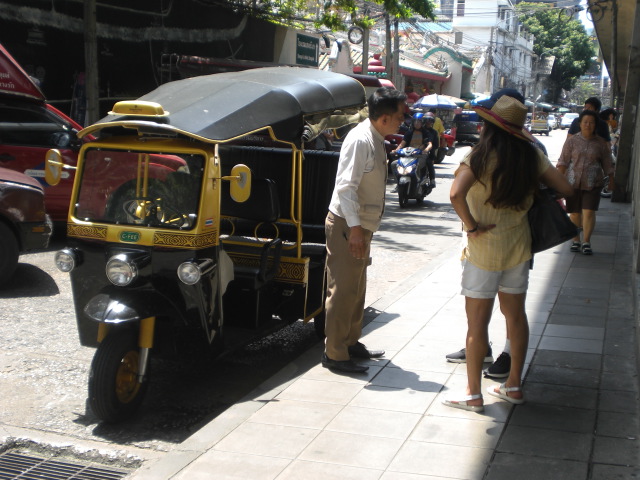 バンコクのホテルやショッピングモール等、観光客がいそうな主要な建物の前には、トゥクトゥクが客待ちをしています。