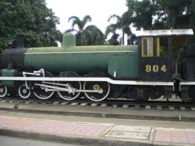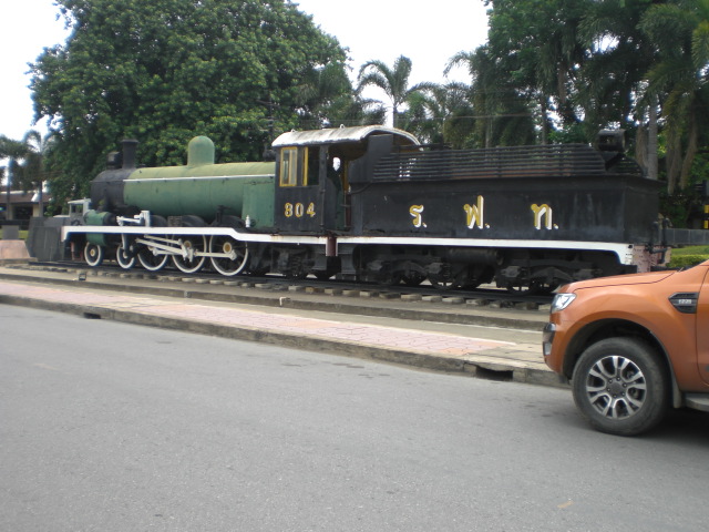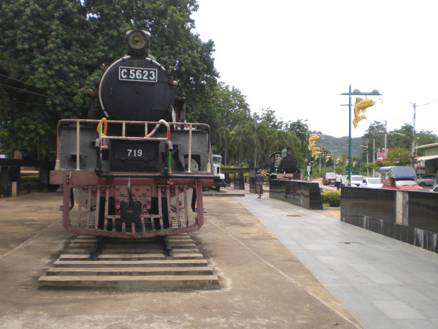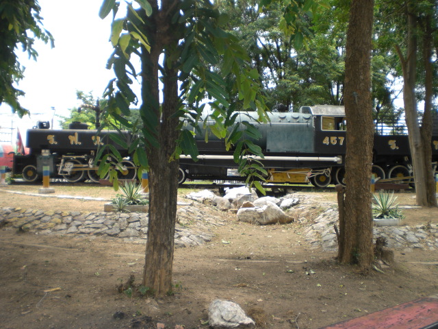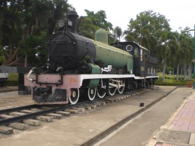 泰緬鉄道で使用されていた蒸気機関車が、カンチャナブリの市内に置かれています。