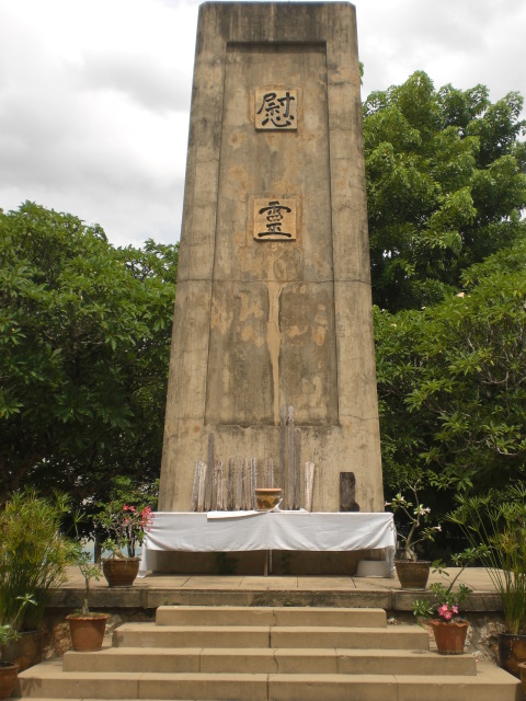 日本軍建立の慰霊碑は、四角柱の石碑になっていて、石碑の中央上部には、大きな「慰霊」という文言が掲げられています。