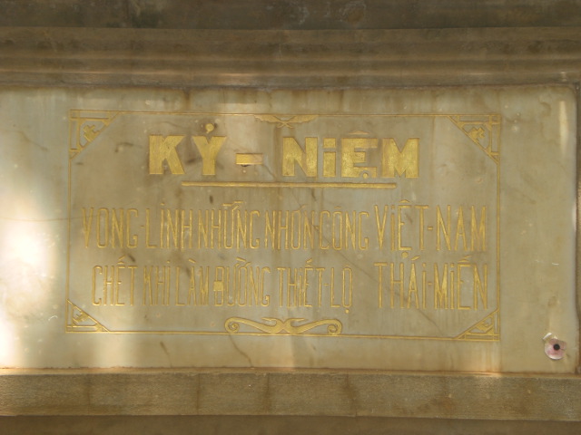 慰霊の碑には、「泰緬を連接する鉄道の建設の間、不幸にして病に侵された南方各国の労務者や捕虜のために、この碑を建て、その霊を慰める。昭和19年2月 日本軍鉄道隊」との碑文が刻されています。