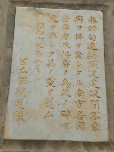 また、先に述べた通りの日本軍鉄道隊の慰霊の碑文が刻されています。