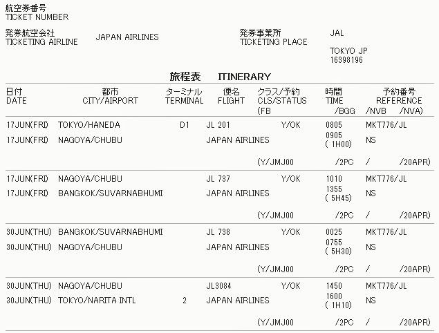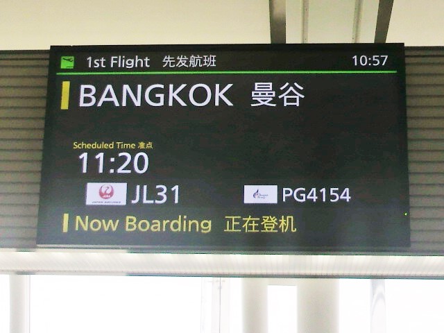 中部空港で乗り継ぎ予定でしたが、最初のJAL便が欠航となったため、バンコクへの直行便に振り替えとなり、バンコク到着が予定より遅れることとなりました。